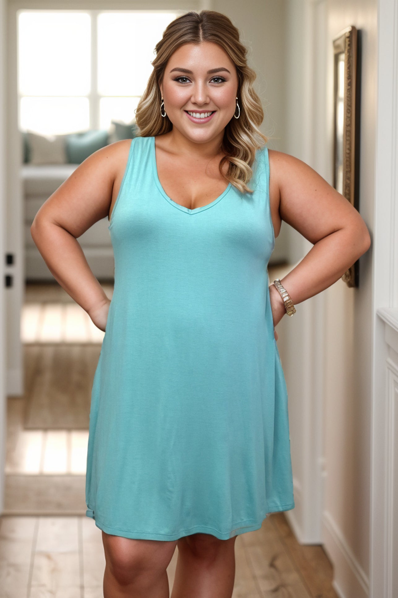 Get ready to lounge in style with our Late to the Lake Dress! This relaxed fit, sleeveless dress features a v-neck design, making it the perfect choice for lazy weekends and vacations by the water. Grab yours now and get ready to slay by the shore!