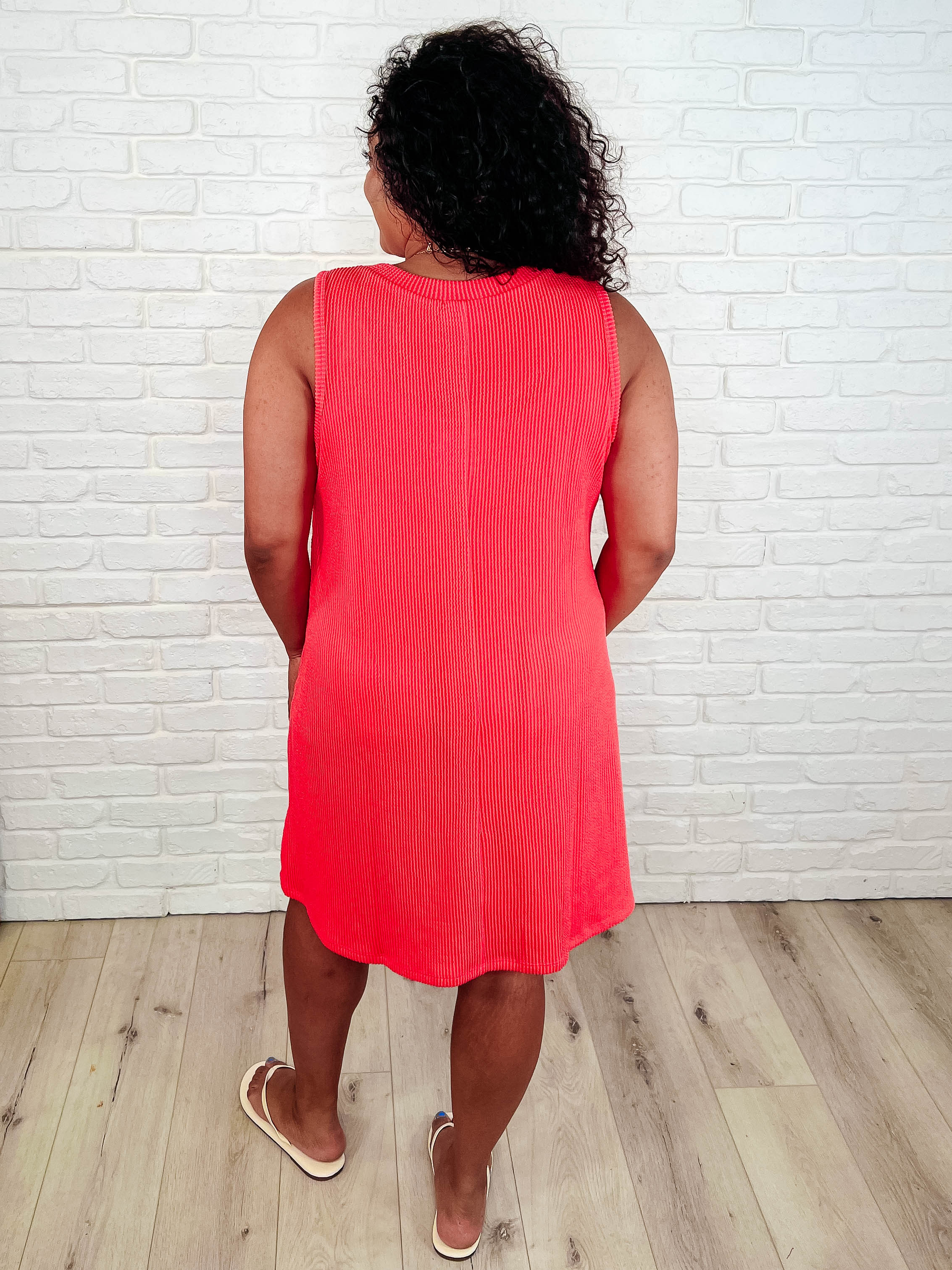 The Power I Hold V-Neck Ribbed Knit Dress in Summer Coral