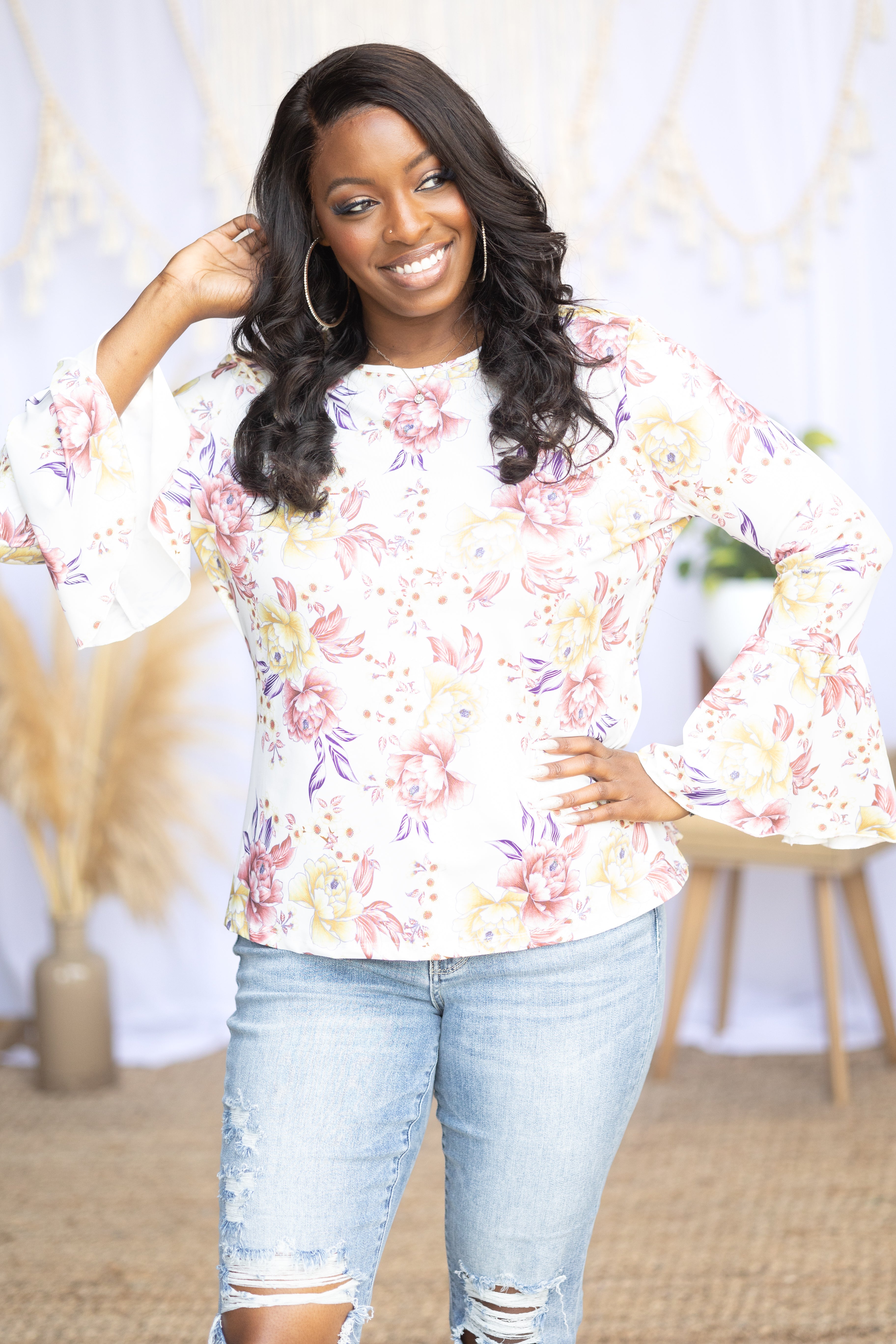 Slip into something light and luxurious with this Follow Your Heart Bell Sleeve! The lightweight slinky fabric and timeless floral print make it the perfect blend of chic and comfy. You'll love the round neckline and long bell sleeves, giving you that perfect touch of drama. Who says you can't have comfort and style in one?