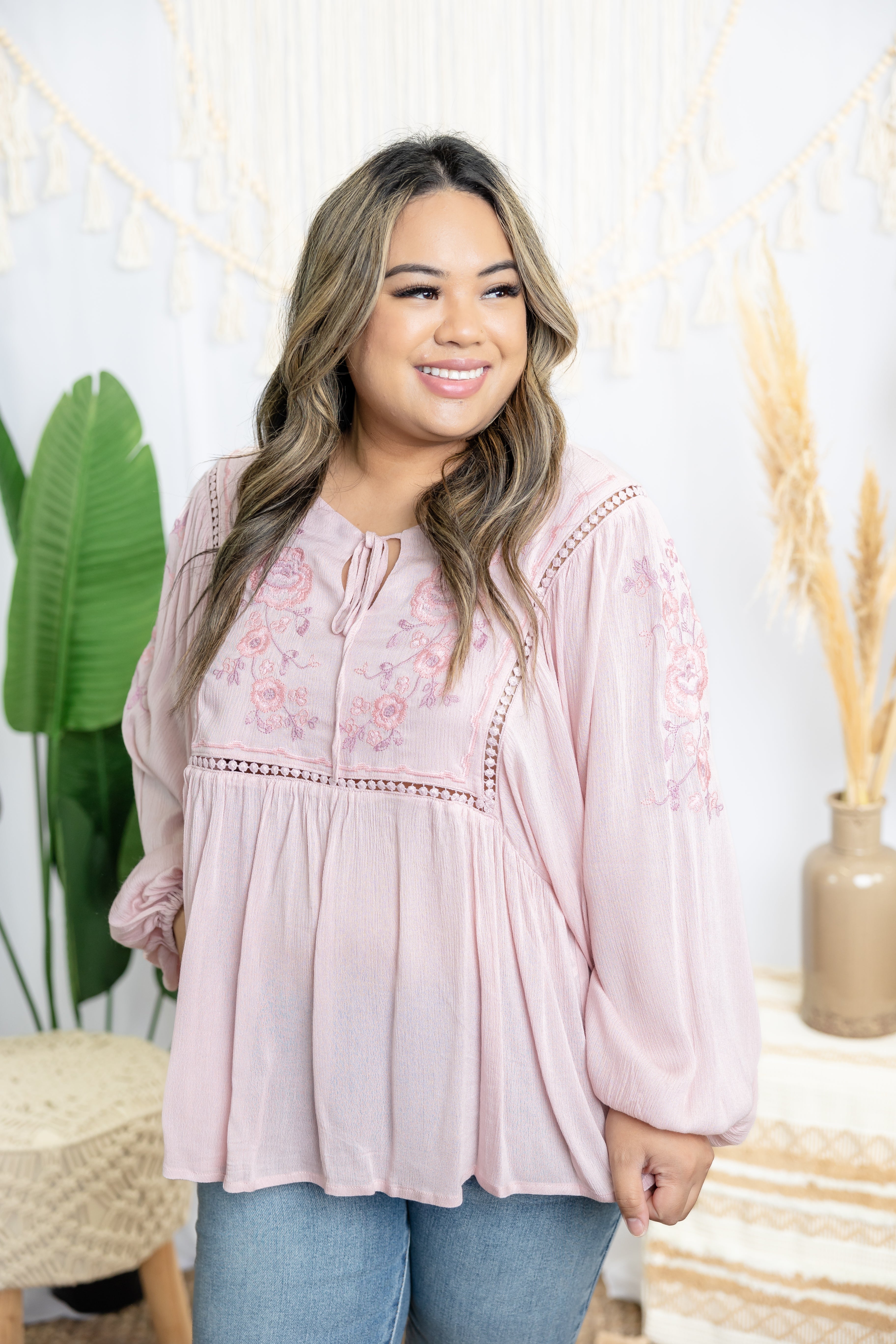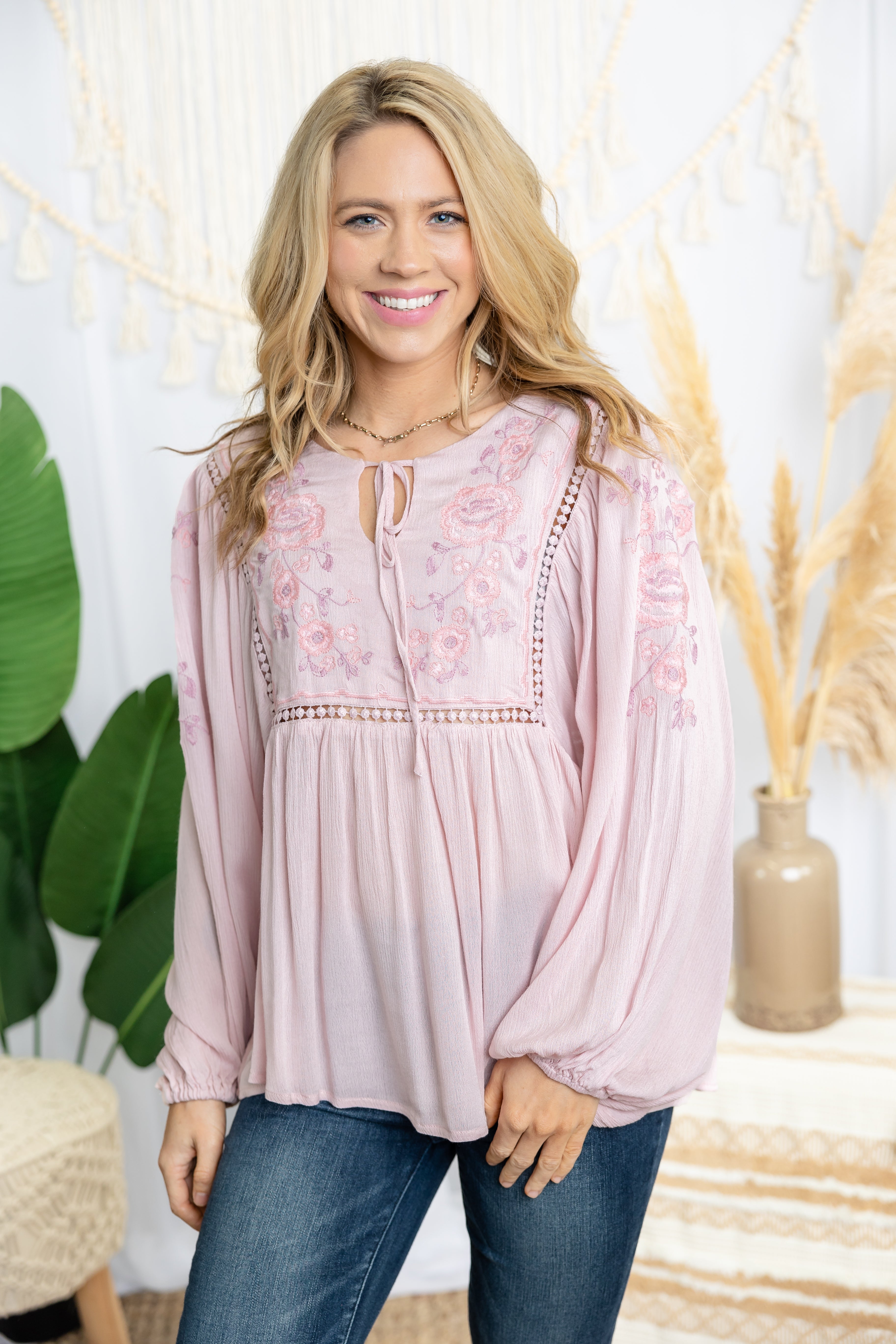 Take Me By My Hand – Top offers an exquisite combination of comfort and style. It is crafted from lightweight, breathable rayon gauze and features a round notch neck adorned with delicate crocket lace, highlighted with beautiful floral embroidery. With long bubble sleeves and a self tie string closure, this top is perfect for any special occasion.